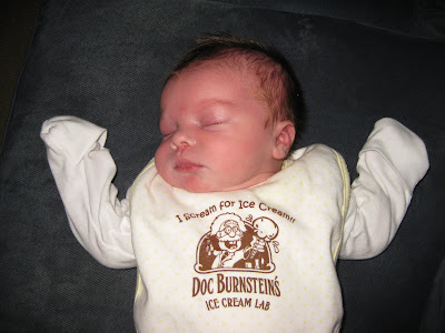 We had our first pediatrician appointment last Thursday - and we walked out of there feeling like we somehow actually know what we're doing. The doc gave us mad props for having him back at his birth weight in 9 days...and said he's a good, strong, healthy boy. We asked him a ton of questions about feeding, since that's our biggest challenge these days - and of course tapped his brain about the whole SIDS thing, since its' really got us both freaked out and we could easily spend all night long staring at our kid breathing. We bought one of those angelcare monitor things and put it under his cradle mattress, so that's given us some peice of mind. The only problem is - when I'm rolling out of bed at 3am all bleary eyed...I sometimes grab the kid and forget to turn the monitor off, so once it detects no movement for 15 seconds it goes BEEP-BEEP-BEEP!! and poor hubs has to roll over and turn it off. This whole sleeping schedule has been interesting. It's both "not that bad" and yet "sucks" all at the same time. I couldn't even begin to try and figure out how much sleep I'm actually getting, since every time he squeaks or grunts...I'm awake and peering over the side of his cradle to make sure he's okay. Please someone tell me I won't do this forever...at some point I will be able to sleep without one eye and one ear open RIGHT? ha!